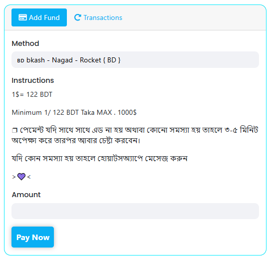 Second you need deposit fund to your account in bulkfollows deposit iseasy and secure , and we have much payment channel for you. For deposit please go to “https://www.fxsmmpanel.com/addfunds” you can find “Add funds” at slidebar